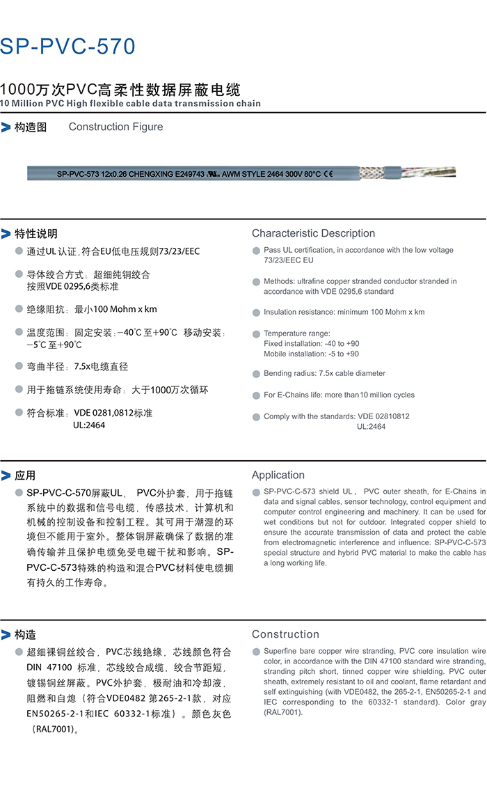 高柔性數(shù)據(jù)屏蔽電纜采用PVC外護套,用于拖鏈系統(tǒng)中的數(shù)據(jù)和信號電纜,傳感技術(shù),計算機和機械的控制設(shè)備和控制工程。